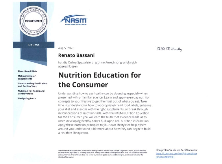 Più di dieci anni fa ho iniziato a dedicarmi intensamente a vitamine, micronutrienti e prevenzione della salute. Ciò che era nato come interesse personale si è trasformato in una vera vocazione. Negli anni ho conseguito numerosi certificati e corsi di aggiornamento presso università e istituti rinomati, in ambiti come medicina dei micronutrienti, benessere, anti-aging, coaching sui nutrienti vitali, consulenza sugli integratori, coaching e prevenzione della salute.