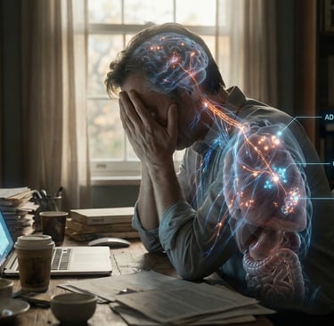 Wir leben in einer Welt, die nie stillsteht: ständige Erreichbarkeit, volle Terminkalender, Informationsflut und täglicher Leistungsdruck. Kein Wunder, dass chronischer Stress heute als einer der größten Risikofaktoren für unsere Gesundheit gilt. Stress betrifft nicht nur unsere Psyche – er wirkt sich direkt auf den Alterungsprozess auf zellulärer Ebene aus. Unsere Zellen reagieren auf Stress sofort: Cortisol steigt, entzündungsfördernde Prozesse nehmen zu, Reparaturmechanismen verlangsamen sich, und seneszente Zellen, also „müde“ Zellen, sammeln sich im Körper.